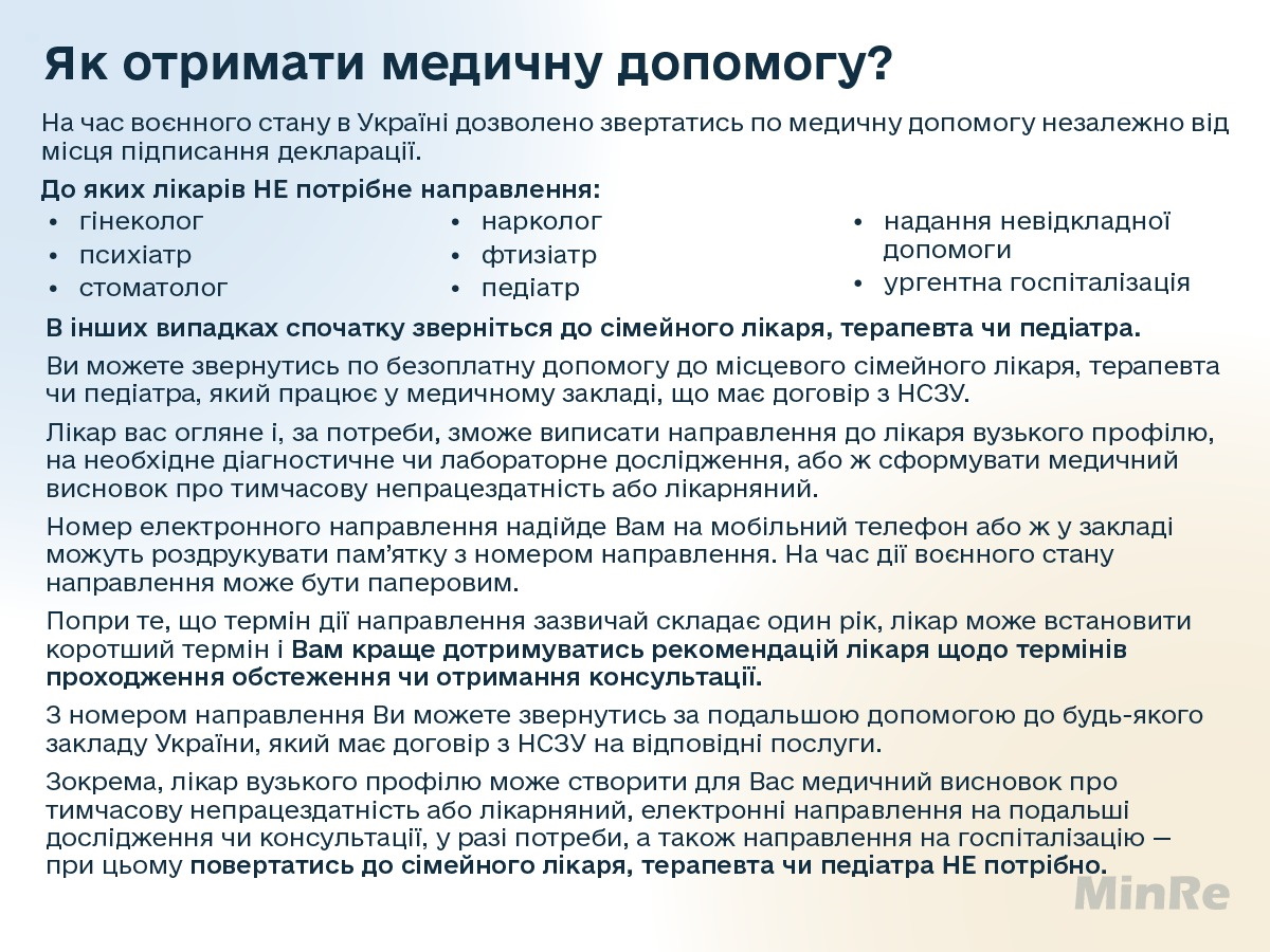 Інфіормація для внутрішньо переміщених осіб щодо доступу до безоплатних ліків та медичної допомоги