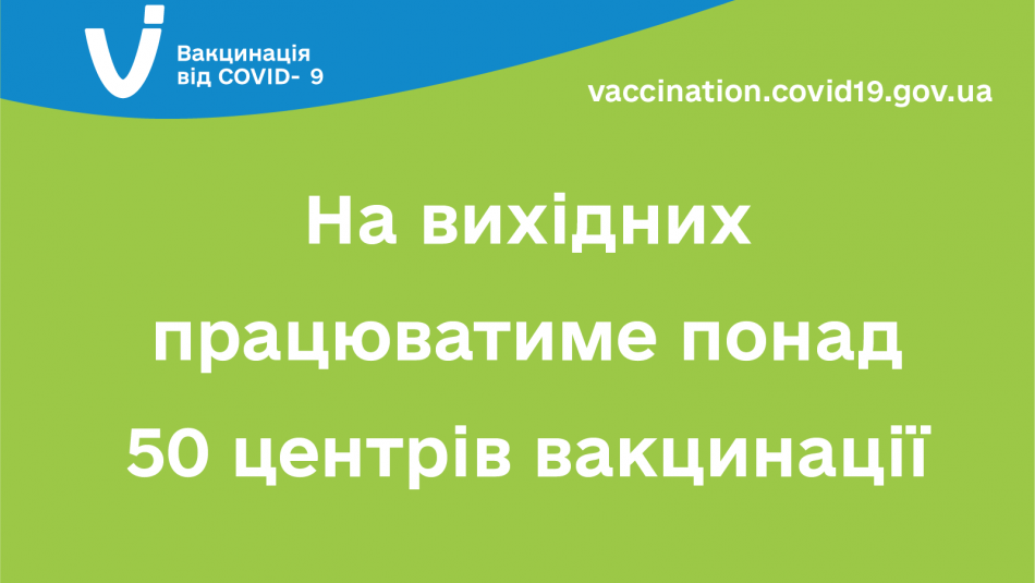 12–13 червня 2021 року понад 50 центрів масової вакцинації проти COVID-19 працюватимуть у 15 областях України та в місті Києві. У них щепитимуть громадян, які записалися до листа очікування вакцинації проти COVID-19 в додатку чи через сайт «Дія» або через контакт-центр МОЗ.
